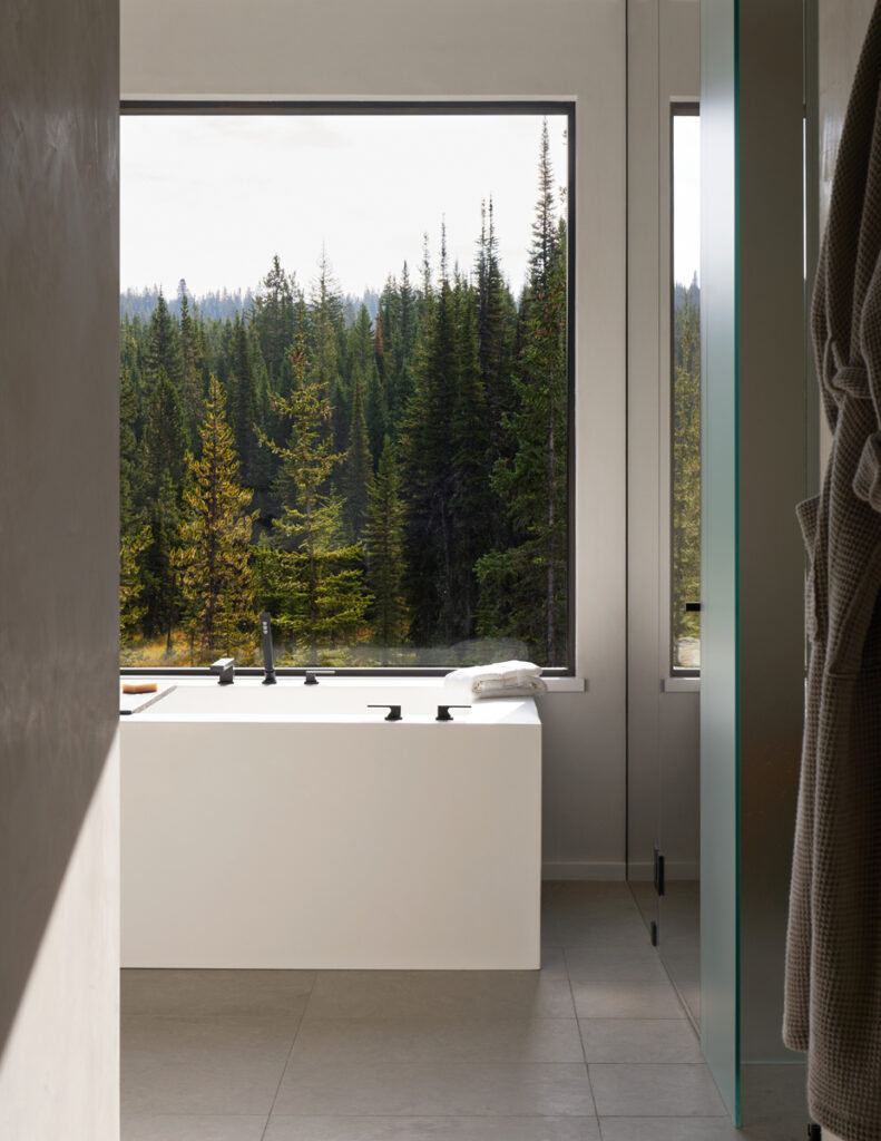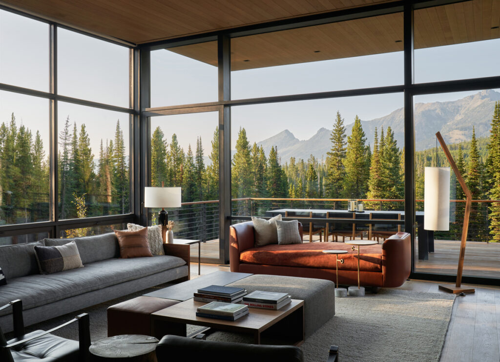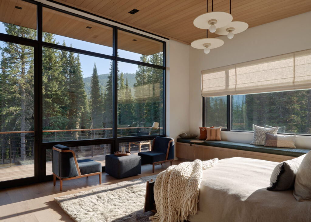 The husband spent time growing up on his grandfather’s tree farm in New Hampshire, and wanted to emulate those treasured experiences for his young family. The resulting 700-sq-metre home brings everyone close to the forests and lakes of Big Sky, which are framed by interior and exterior spaces across the home’s two levels. A launchpad for their many outdoor recreation activities, including skiing, fishing, and hiking – the home is a framework for the their connection to the elements, and to one another.