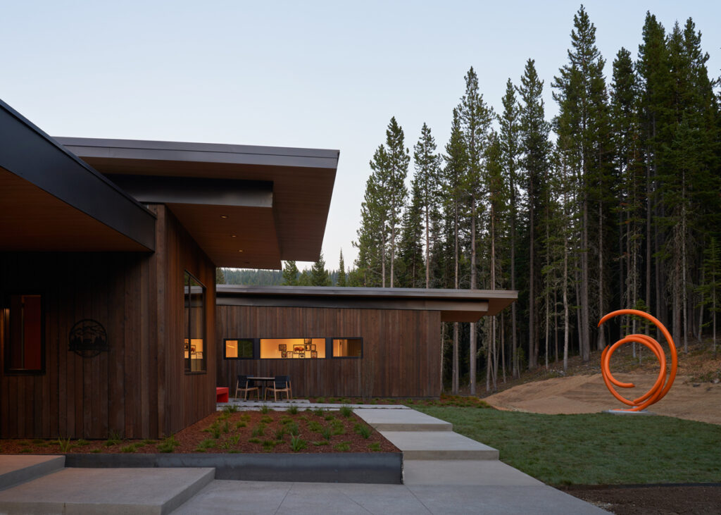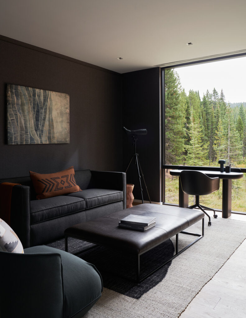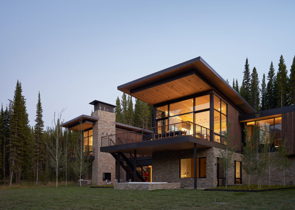 Situated in the heart of Moonlight Basin in Big Sky, Montana, this mountain retreat rises into the dense fir and pine trees, offering the owner family a close connection to the natural environment. With their main residence in Manhattan, the owner couple desired a vacation home where they could reconnect and encourage their three children to interact and commune with the landscape as they grow up.