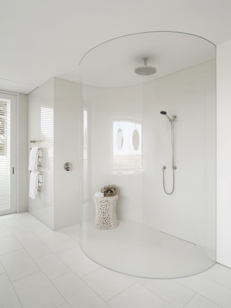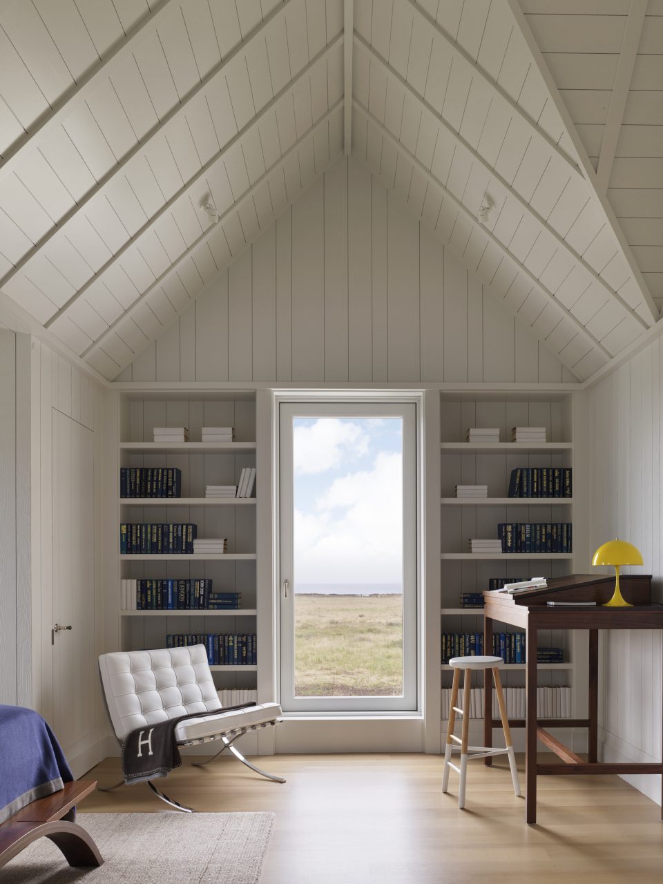 To underscore the spectacular views from the interior, Will’s team composed a clean white palette that satisfied the husband’s fondness for simplicity, while using traditional materials the wife loved, like whitewashed paneling and soft gray plaster. This created an airy combination that ‘feels so expansive,’ explains Will. ‘When you’re looking through the glass out to the ocean, you don’t even notice the ceiling because everything else recedes away.’