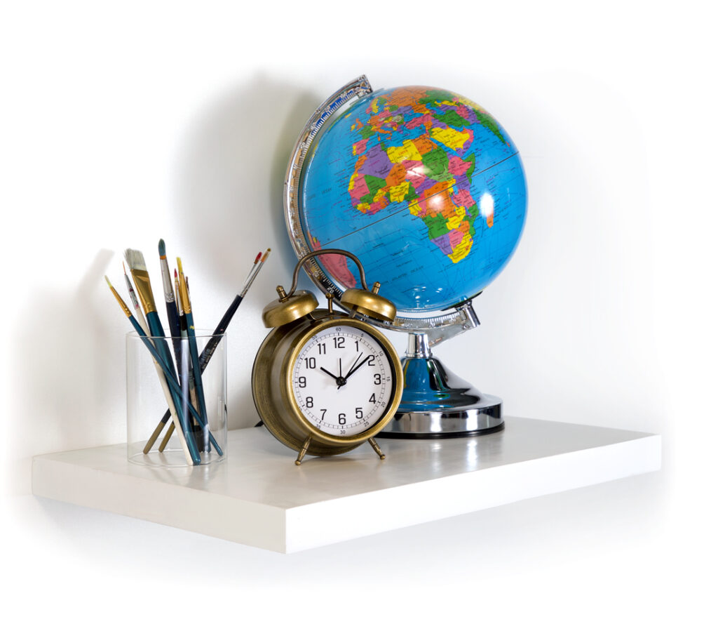 Housing essentials has never looked so good. Add texture to your arrangement by mixing materials such as brass, bronze and wooden frames. Lean these beside one another to create a decorative haven for life-long memories. For a soft accent in the bedroom, mount a shelf over the bed. Accessorise the wide shelf with your favourite books and potted plants for a personalised finish. In the kids’ room, add a trendy storage space for their books and toys by hanging a shelf above their play space. Separate each shelf by organising bed sheets, burp towels and blankets. In the home office, fix shelves behind the desk and chair to house any awards, diplomas and degrees for a professional appearance.