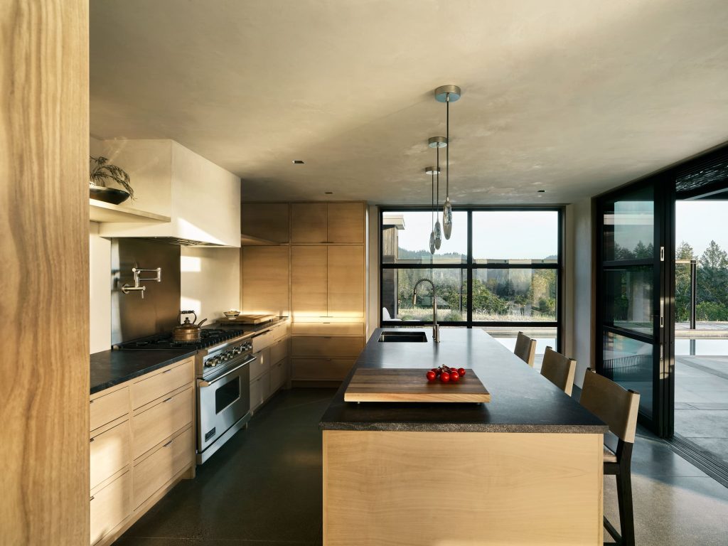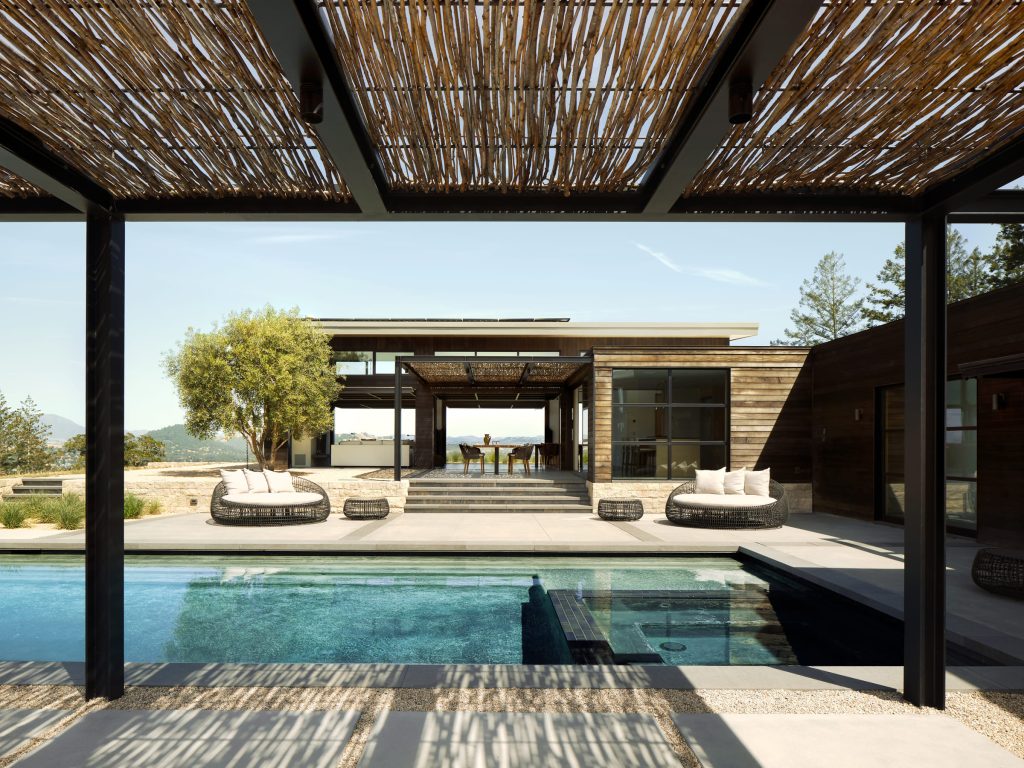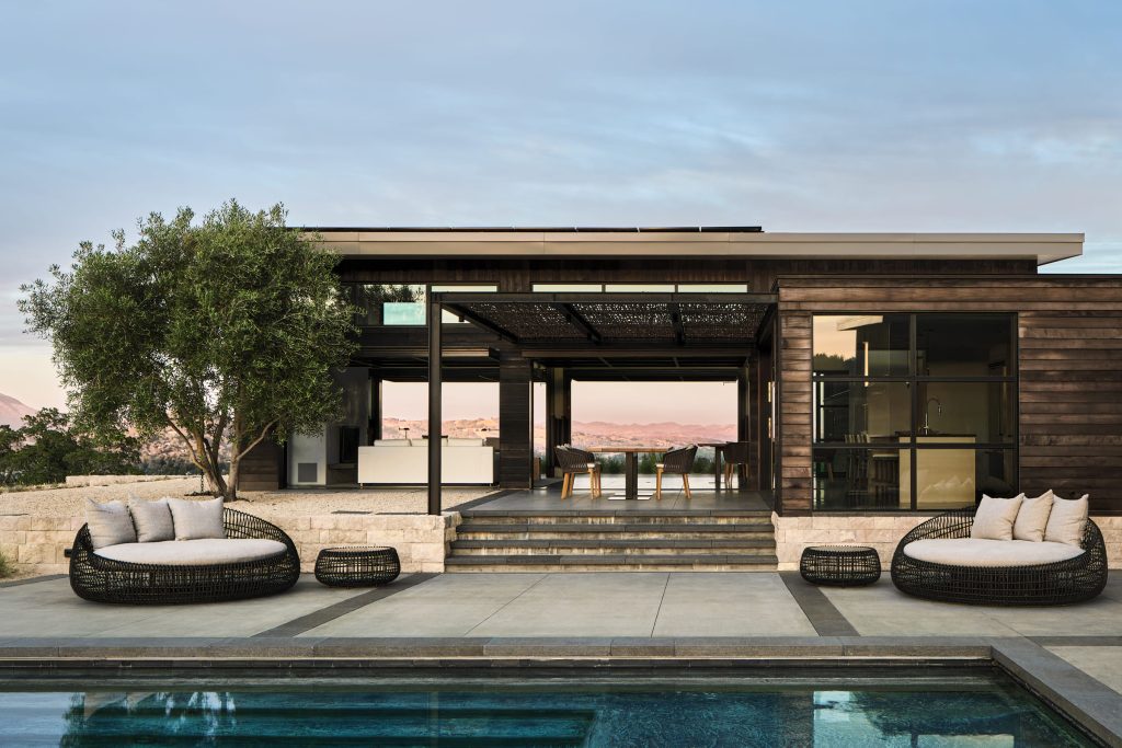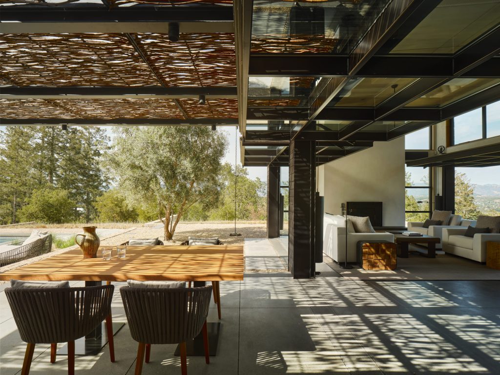 This house in Healdsburg embraces the outdoors with large pivoting walls that blur the boundaries between inside and out. Created in collaboration with Arterra Landscape Architecture, the project comprises a 195-sq-metre main home and a 79-sq-metre guesthouse.