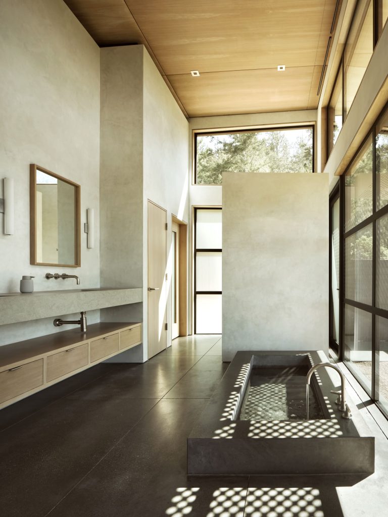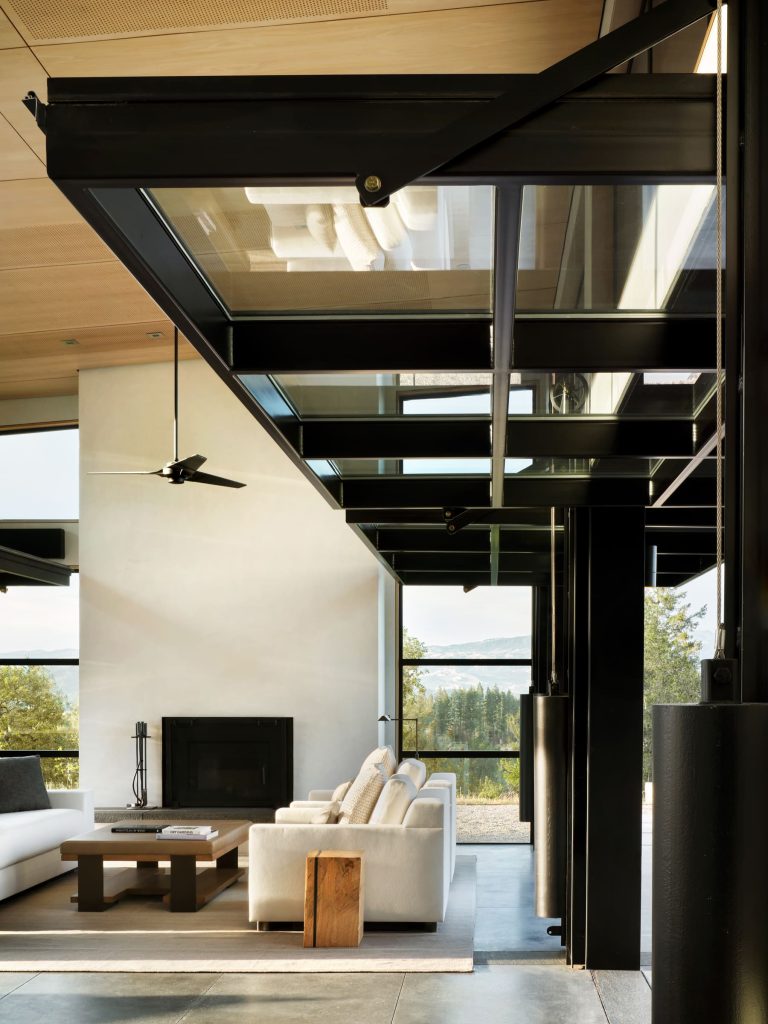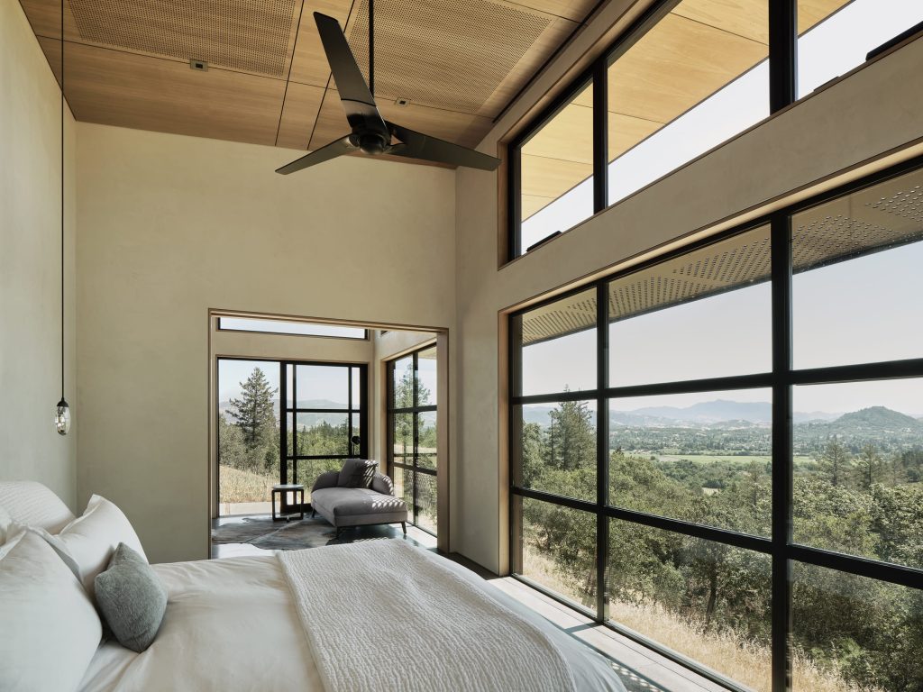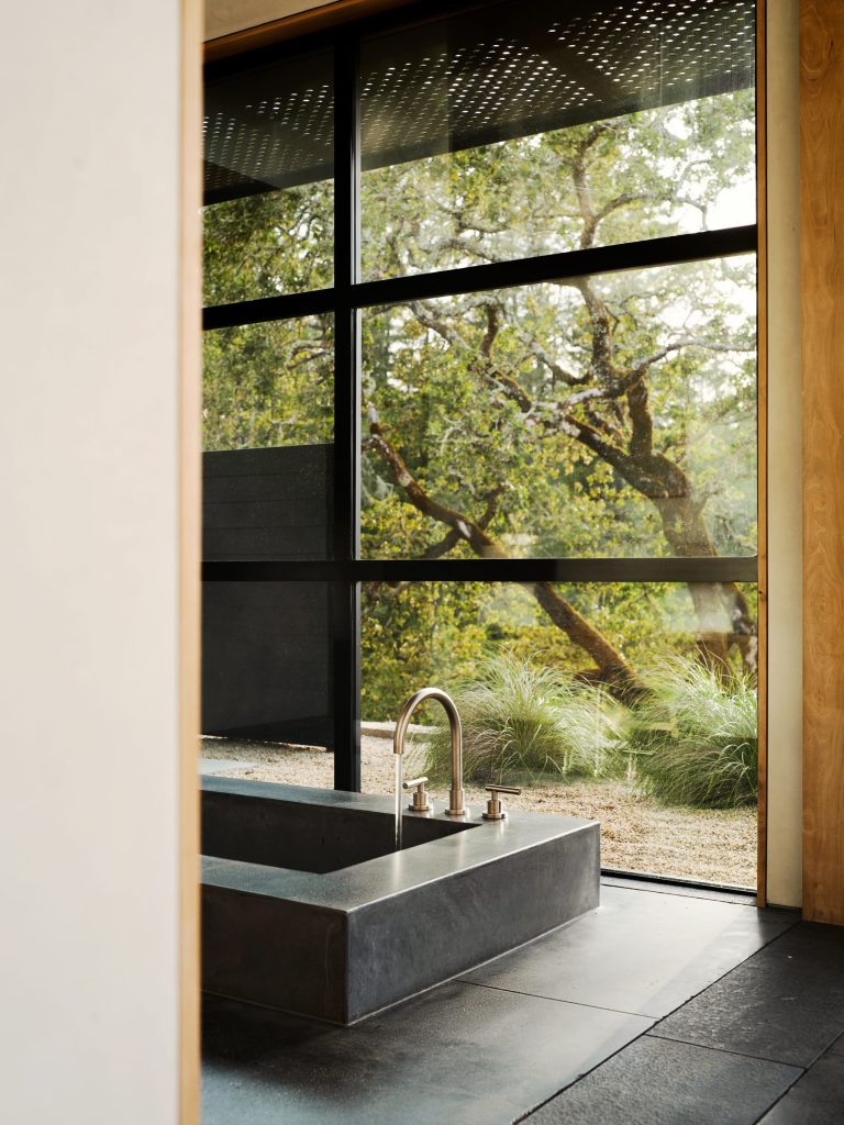 This house in Healdsburg embraces the outdoors with large pivoting walls that blur the boundaries between inside and out. Created in collaboration with Arterra Landscape Architecture, the project comprises a 195-sq-metre main home and a 79-sq-metre guesthouse.