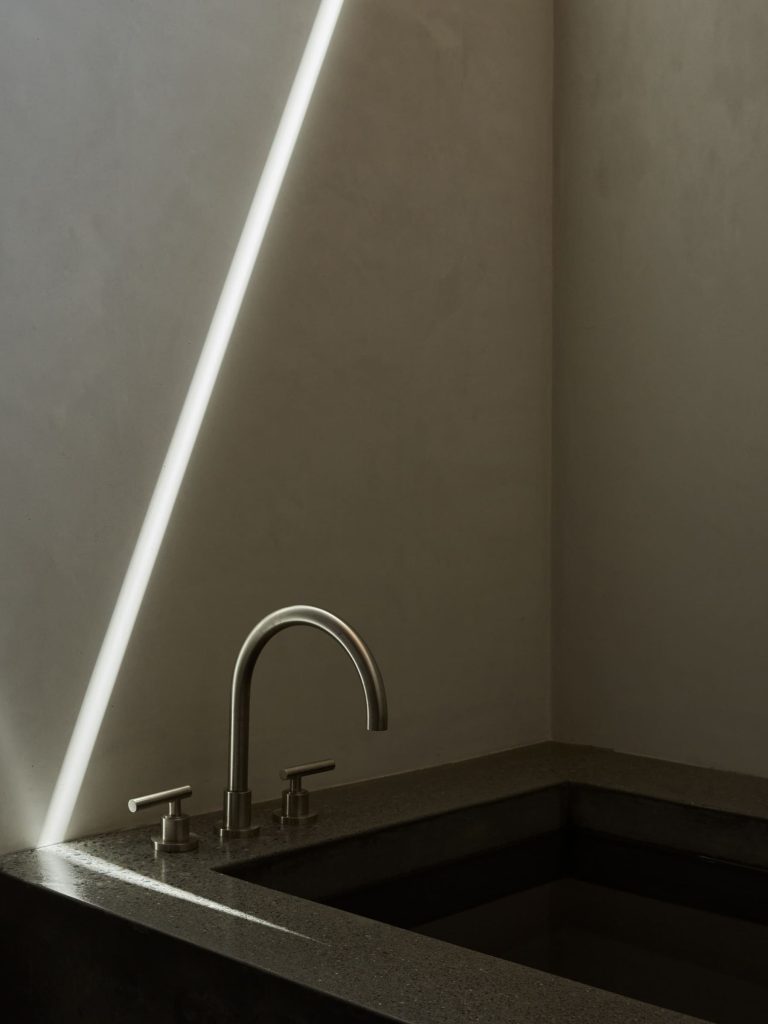 A new kitchen designed for both entertaining and family meals is nestled into the protected intersection of the public and private wings, spilling out onto the outdoor living, dining, and pool spaces. Additionally, a new detached structure housing a yoga and Pilates studio, doubling as a media centre, sits close by, creating a calming hideaway tucked into a wooded grove.