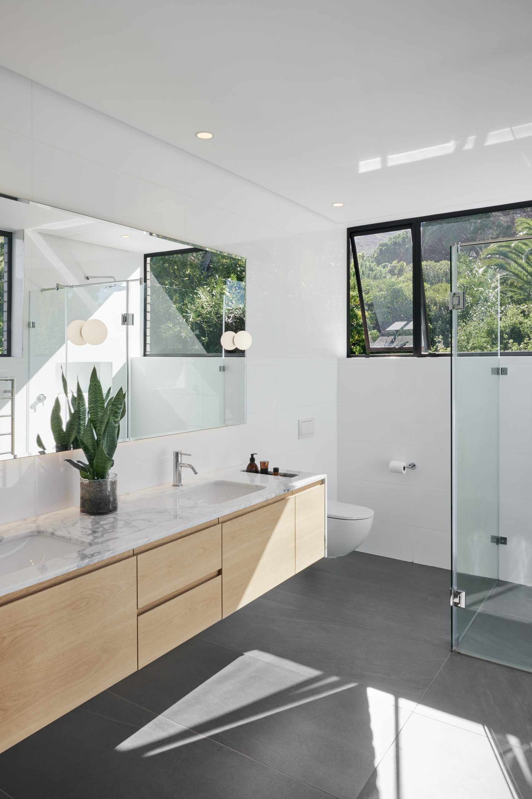 Dion Walters: The obvious answer would be ‘money’! The real difference is just being able to design and build exactly what you know will work for yourself. For me, good circulation of planning is essential, and a certain minimum level of finish is non-negotiable. The overall thermal performance of the building should always be considered when designing glazing and volumes. I consider the thermal trade-off between volume and heat which can be offset by storing energy in passive heat storing façades. In Hout Bay, mountains mean the sun sets early, so there is no harsh west sun to manage. We need to capture what sun we receive during the day, making the parameters for designing glazing are different on every site.
