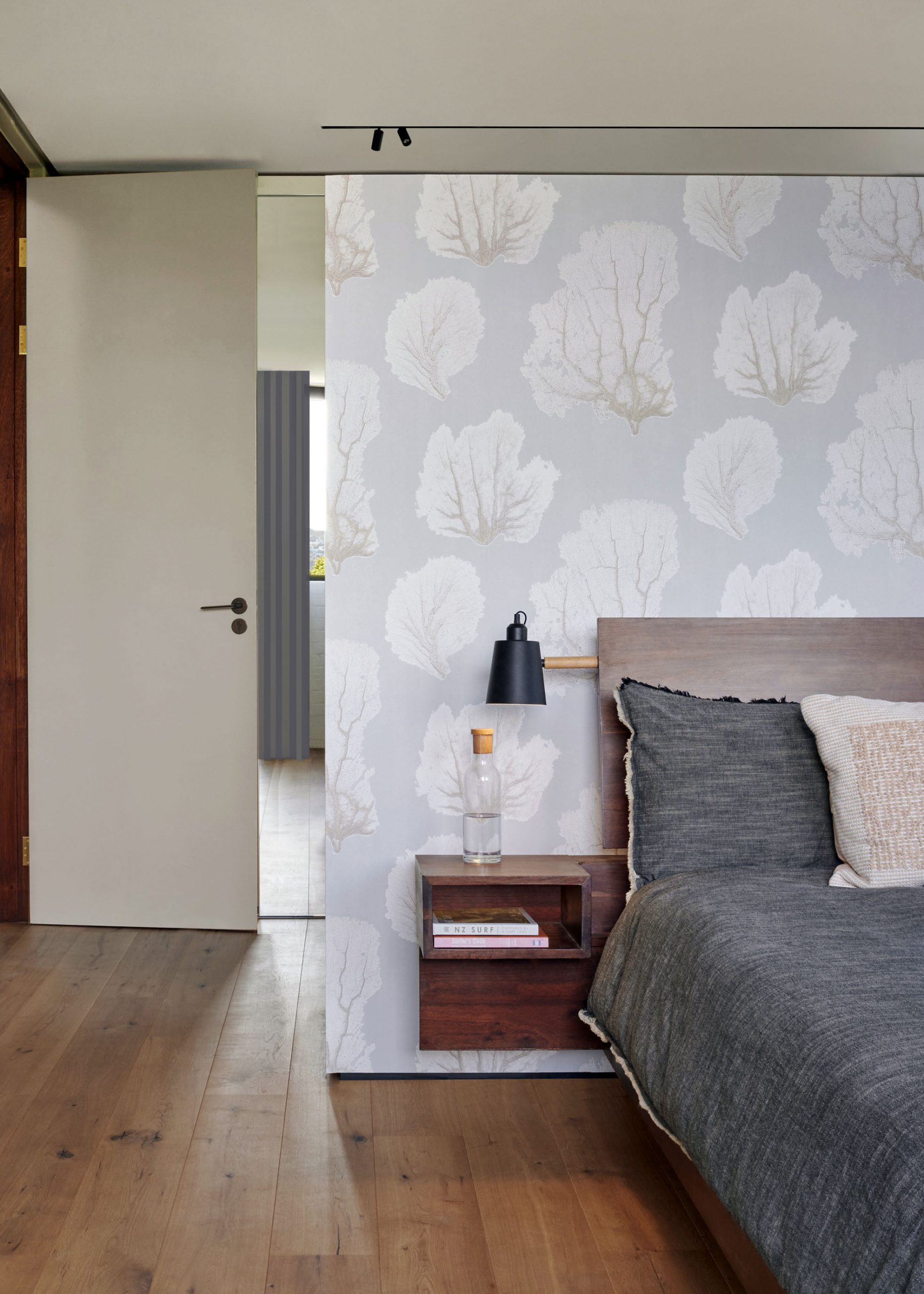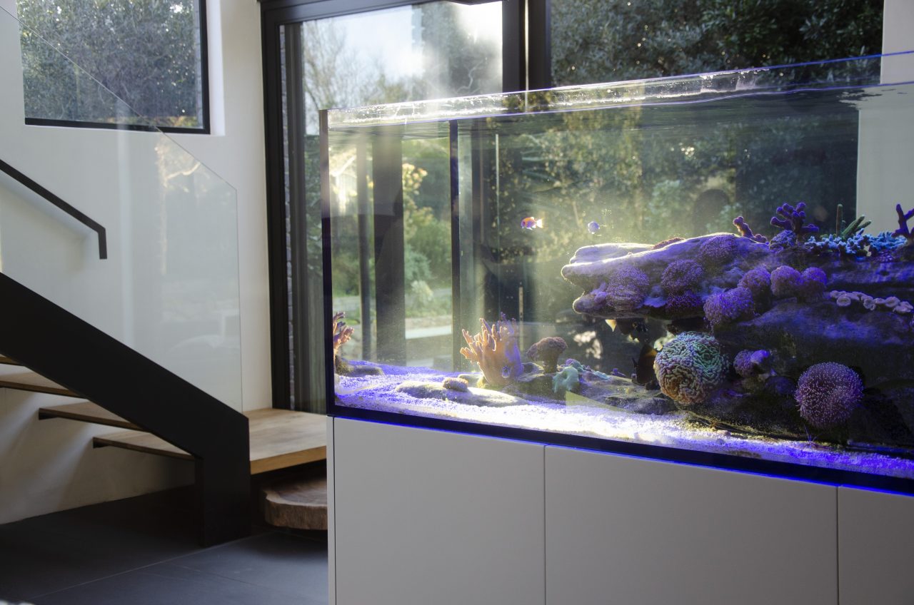 DW: Designing for a wife and young daughters certainly influenced the palette of the home. Key motivators: softer palette, Danish design, ocean inspired. The built coral marine tank that occupies the entrance volume is a nod to our family’s love for the ocean.