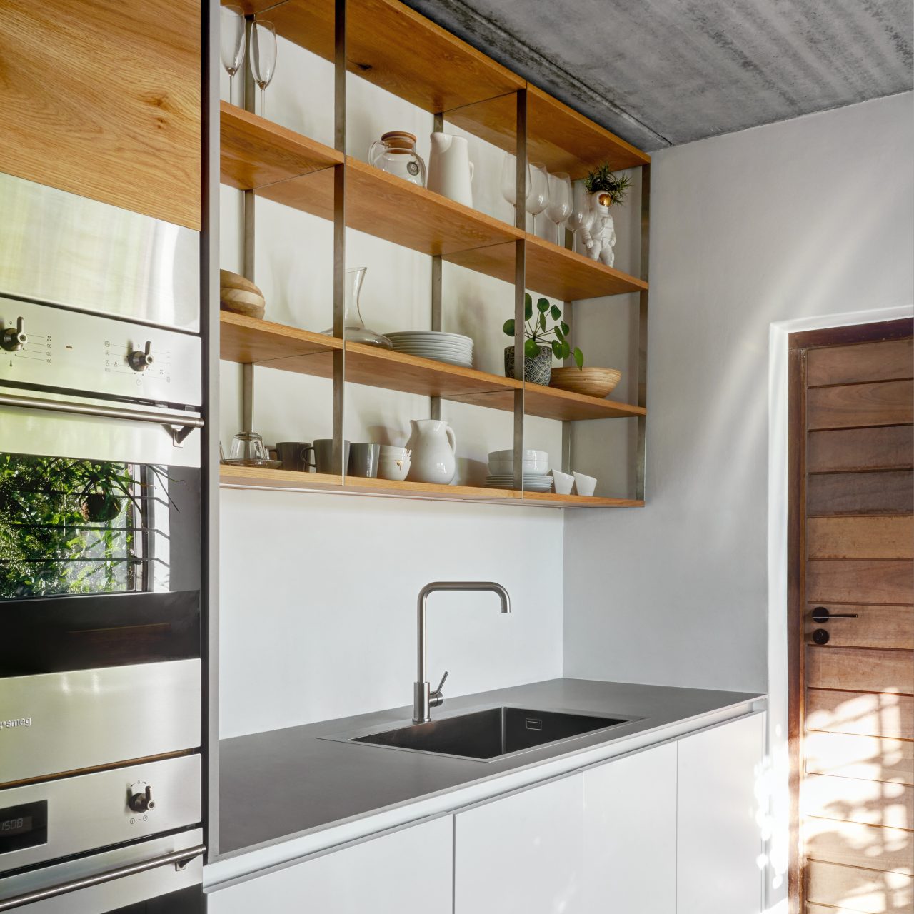 ‘While living in this temporary accommodation adjacent to the township and with a limited budget and no contractor, I had to manage this build myself through 2020. To be sincere, the lockdown actually contributed positively to the dynamic as I had more time to monitor detail and to be personally involved with the build. This made a difference to the cost and finish of the project. Beyond that, there’s the added character tangible as a result of being more involved than initially expected.