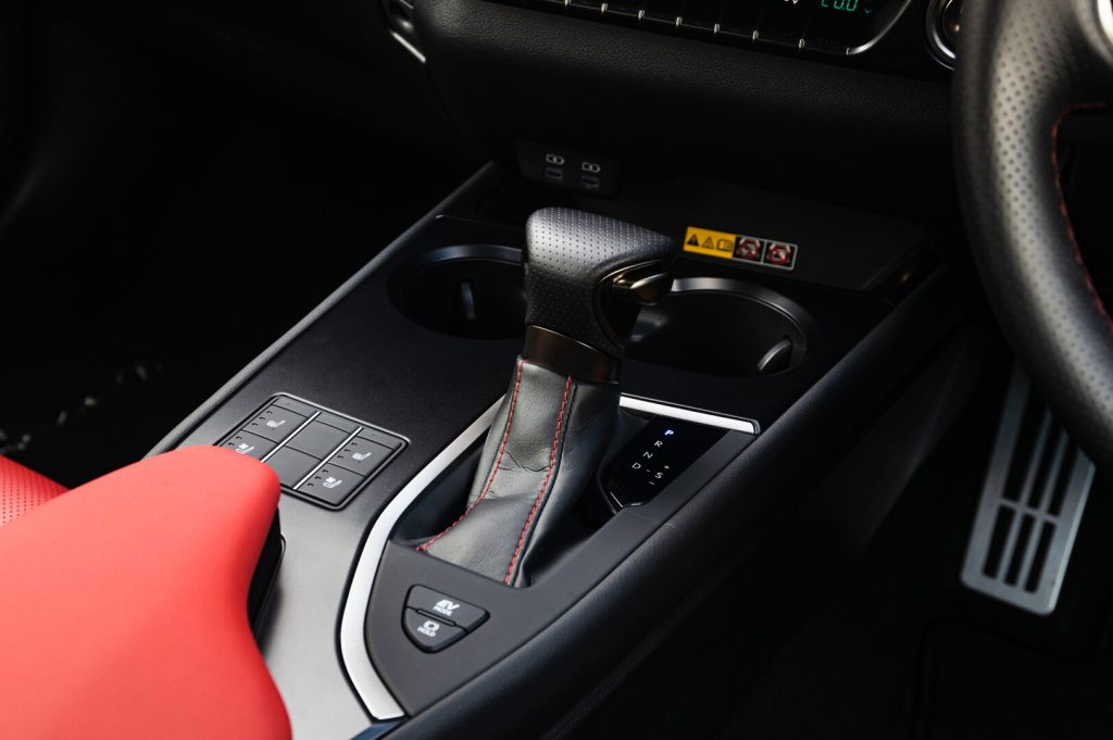 Moving indoors, the F Sport-exclusive cabin features include front sports seats made with a highly supportive integrated-foaming technique first developed for Lexus F models. The digitally rendered instrument meter features a movable virtual ring inspired by the Lexus LFA supercar. A leather-covered F SPORT steering wheel, leather-trimmed shift knob, eight-inch TFT colour display, aluminium pedals and footrest round off the interior package.