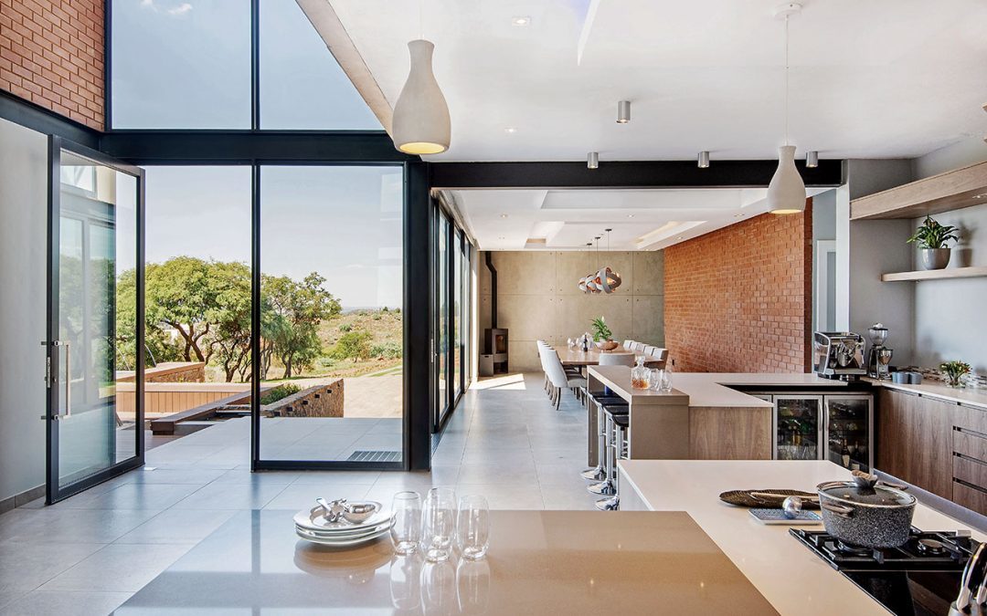 Located inside an established eco-residential estate, this stand is nestled in an area where wildlife roams free between the properties, while it enjoys expansive views over most of Pretoria East. The clients wanted a design that would invite this enviable indigenous landscape into their new build. The result is a structure of over 800 square metres on land measuring 1 200 square metres.