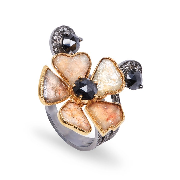 Chalcedony Druzy Volcano Ring with 18K Yellow Gold