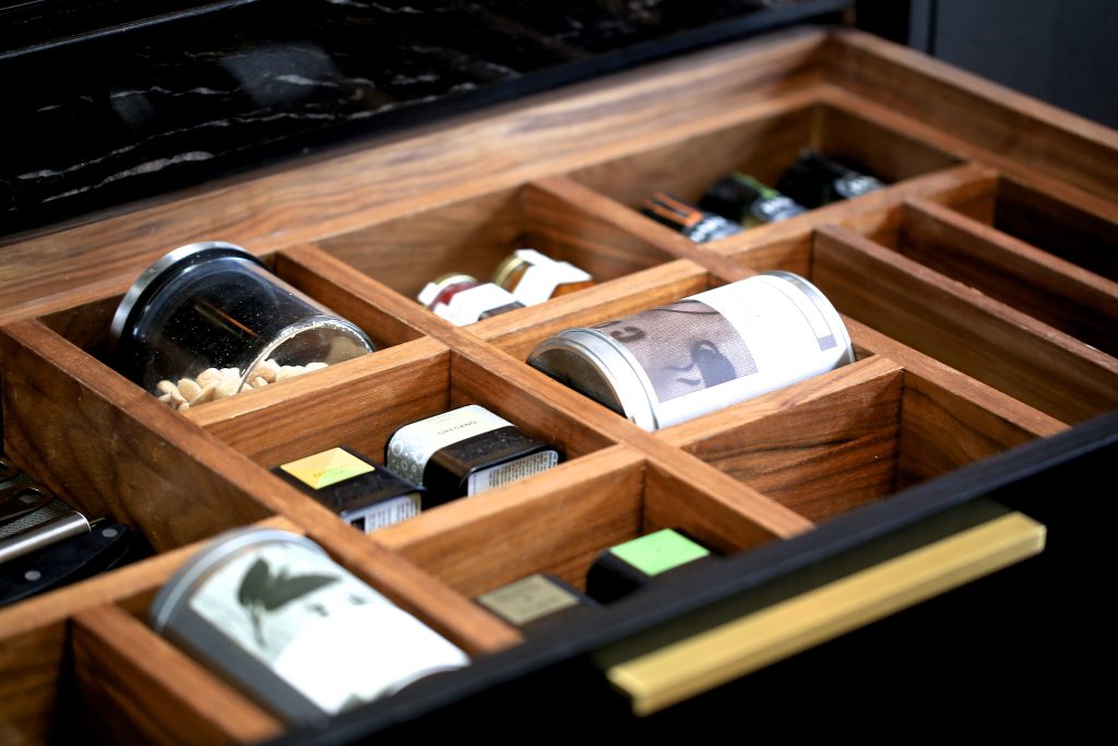 Notable is the artwork, largely comprising of family shoots, which makes sense as the client is a successful fashion model. Tim walker photography and his expertise has successfully added to the overall cool, edgy signature. Storage and wardrobe-wise, the bottom half of the cabinetry encompasses custom-made walnut drawers, each of which is individually separated to accommodate the clients’ wardrobes.
