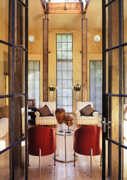 Located in the Hout Bay valley, Cape, on a well forested hillside, this house was originally a row of three labourers cottages. Subsequently home to an architect in a culture of yet, it represents an imaginative and singular revamp. Architect Richard Tremeer; interior design Richard Tremeer and Jenni Button, 1995.