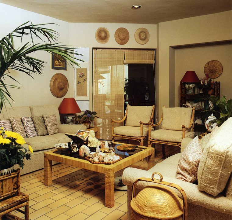 This Hyde Park, Jhb townhouse typifies the style of the late 1970s and early 80s, which often included oriental elements such as wickerwork and ceramic objets d’art. Interior decoration by Ronnie Fellows and owner, 1979.