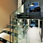 The middle floor houses the main living components; a spacious white concrete-topped open plan kitchen with separate scullery leads to an entertainer-friendly dining area. Beyond is the living space, which is able to be contiguous or screened off from a TV / family room by means of a full height sliding / folding