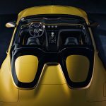 Pure in line and execution, the distinctive, wraparound cockpit flows from a new, steeply angled centre console seamlessly into the dashboard and doors. These then wrap rearwards towards the semi-enclosed luggage compartment behind the two seats.
