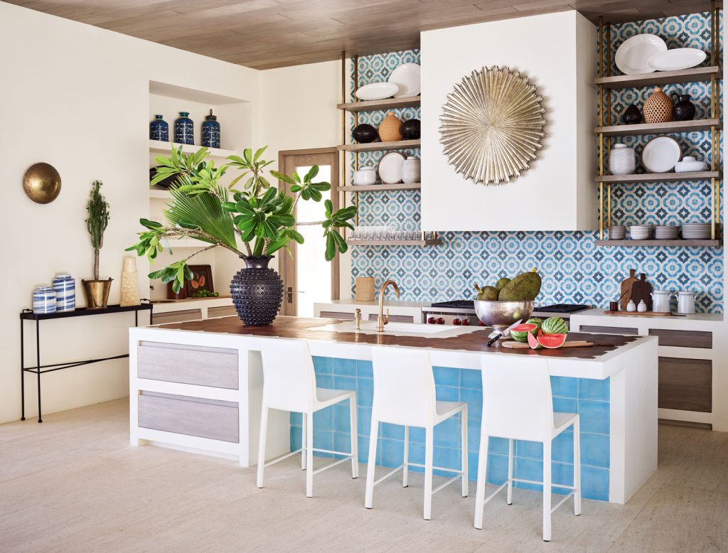 The architecture is refined and blends with the environment, while the interiors offer a playful contrast with vibrant colours and bold patterns. Every detail has a sun-kissed quality, integrating the architecture into its natural context.