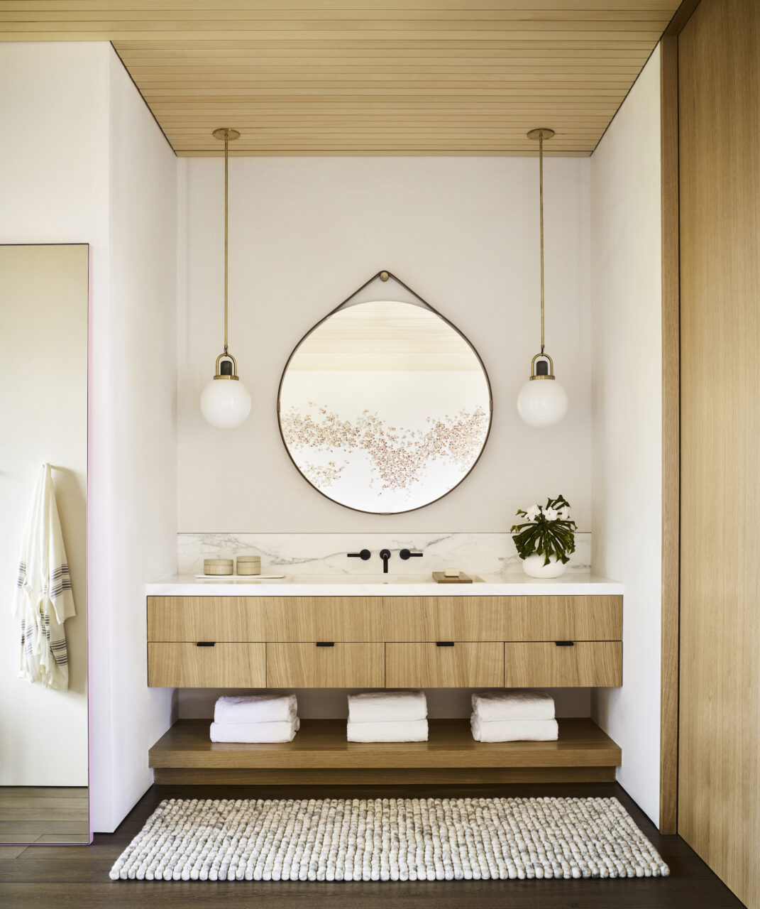 The main hale seamlessly frames the ocean views with expansive floor-to-ceiling pocketing glass doors. A separate system of pocketing wood screens is designed to soften the sunlight without compromising the views. Materials – including basalt, Alaska Yellow Cedar and steel – are simple, tailored and unadorned, and used for both interior and exterior surfaces. Furnishings are casual, favouring lightly-coloured sofas and chairs that act as a counterpoint to the dark lava and basalt. An ocean facing lanai descends to an infinity-edge pool with intimate outdoor gathering spaces.