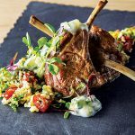 - Lamb cutlets, tabouleh salad with cucumber raita