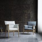 “The fundamental concept behind the Embrace Lounge Chair is the same as the Embrace Chair’s, but we have altered the proportions. The sitting position in the lounge chair is completely different, which has influenced all the angles and the entire geometry, and we have also played with the amount of filling in the cushions. The lounge chair enabled us to achieve a greater contrast between the soft upholstery and the simple wood frame. Greater volume, a softer filling and bolder proportions give the lounge chair a more enveloping feel. When you stand in front of the chair, you want to touch it, to sit in it, and to never leave it,” says Gernot Bohmann from EOOS.