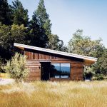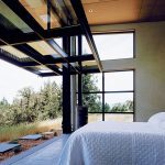 From its intersection with the great room, the home’s second wing extends towards the north and becomes incrementally more private as it flows from the garage to a media room opening onto the pool, and to the master bedroom at its rear. The master bed looks out through another oversized, operable glass panel onto the rolling meadow beyond, establishing a visual connection with the land in the first and last moments of each day. Just a short walk away, a guesthouse extends the wing’s path down the hill and offers an additional level of privacy.