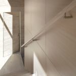 The interior has a paired down material palette consisting of bleached Douglas fir and white Carrerra marble floors. Minimalists by nature, the clients craved simplicity without starkness. Therefore accents of bronze, blackened steel, and Claro walnut bring richness to the interior furnishings, balancing the austere signature of concrete and steel.