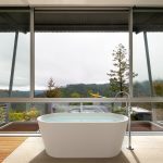 The seamless transition between interior and exterior living was a primary objective, due to the clients’ propensity for horticulture. Glass walls on three sides of the structure allow for a strong physical and visual connection to the landscape; including the adjacent gardens and orchards and the distant Mt. Saint Helena. So whether they’re preparing meals in the kitchen, working in the home office, relaxing in the freestanding bath, or lounging in the living room, the clients’ enjoy the spectacular panorama.