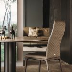 Versatile and timeless, Belinda encapsulates the value of artisan expertise and the charm of crafting premium quality raw materials. The structure is clad in ash, while the seat and backrest are upholstered in fabric, synthetic nubuck, micro nubuck, eco leather or leather from the sample range.