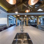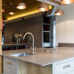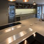 With the worktops coming into regular contact with sharp knives it was imperative the surfacing was scratch resistant. Furthermore, with each island containing a hob and an open shelving areas to permit the disposal of hot pans, the necessity for the surfacing to be able to withstand high temperatures was crucial to its selection.