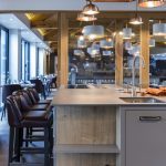 Sam continues: “As a designer, while decor options and the specification of sustainable product plays a significant factor in the surfacing selected, it is also imperative the material can meet the demands of a project. In the instance of The Kitchen, Neolith’s ability to withstand high temperatures, its resistance to stains, cuts and marks, and the bespoke sizing options offered by TheSize made it ideal for the commercial setting.”
