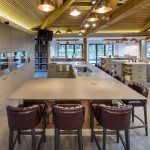 Sam Hughes, Senior Designer at The Big Kitchen Company comments: “With two students per island, the large slabs offered sufficient width to fit in all the required appliances whilst leaving an appropriately sized work space.