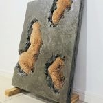 One of his pieces that received a high level of attention early in 2018, is called “In a time of peace there was a casualty of war” and is a continuation of his exploration of the use of materials such as toothpicks and concrete. By juxtaposing the toothpicks and concrete, a textural and visual contrast is created in the work, which Soal hoped to push further through the paradox of the title. This piece of work is currently in the collection of Allude Cashmere’s founder, Andrea Karg, in Berlin.