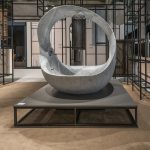 Magic Cave by Marco Piva is a stone sculpture that envelops and generates water, taking its inspiration from underground caves. The stunning bath and shower create a curve line that wraps around itself creating an environment conceived to welcome, protect and regenerate the body through a delicate shower or a jet that flows into the tub at the base.