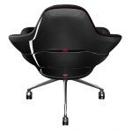 The sophisticated cast aluminium mechanism engineered by the Poltrona Frau Research and Development Centre, based on the Ferrari Design Centre’s idea and design, is the foundation of Cockpit’s ergonomics. The activation levers extend like two wings beneath the seat, clearly referencing the steering wheel controls in sports cars. The right lever lets you adjust the seat height with a gas spring – hidden by special aluminium casings. The left lever activates the inclining and tilting oscillation movement thanks to designated leaf springs, with upright position locking system. 360° armchair rotation completes the functions.