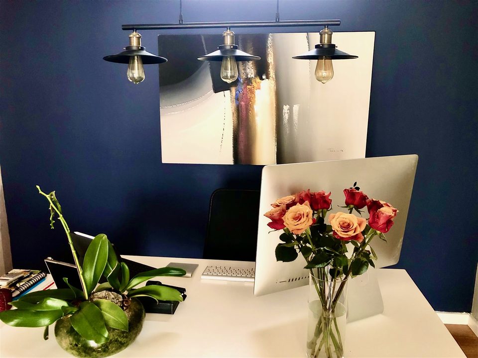 in it. Inspired by the colour, the blank canvas of her new office and the arresting painting, a new