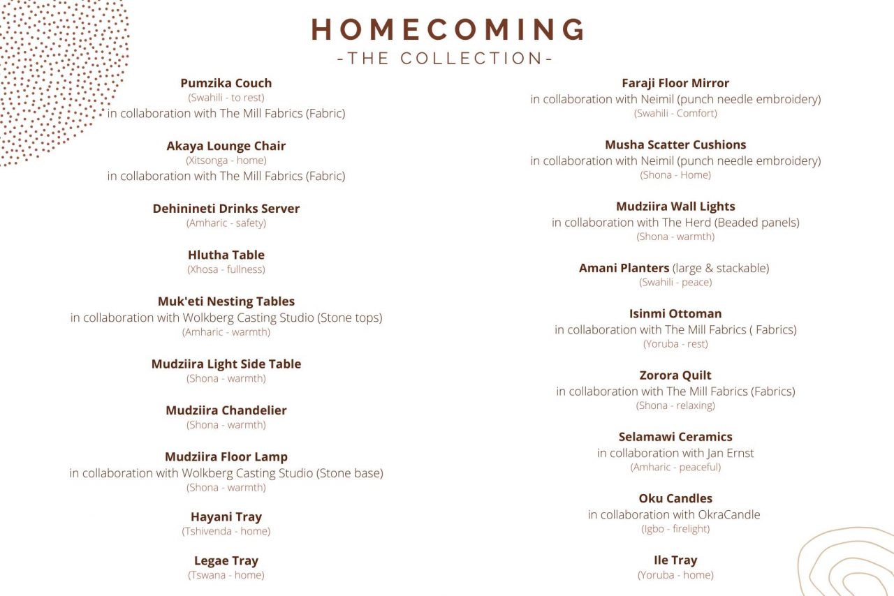 ‘The Homecoming collection began during the lockdown in 2020, while we were all permanent inhabitants of our homes. That space came to mean so much more to all of us in the uncertainty of an epidemic, and the people we were with also became synonymous with the sensations of ease, safety and refuge,’ says Mpho Vackier, founder of The Urbanative.