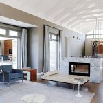 - The interior volumes are generous and made more so with a pale palette of neutrals, low profile seating and uncluttered walls.