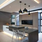 In an open-plan layout, skylights can add natural light during daytime, especially over counter-height islands, which are useful in expanding valuable prep and cooking space. In smaller areas, varying ceiling levels might introduce design pizazz, perhaps with bulkheads that include concealed