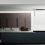 ‘The Riciclantica collection focuses on the reduction of materials used. This ethos has resulted in extreme door dematerialisation and the lightest door in the world that fits into an aluminium structure that is water, steam and heat-resistant. Due to this remarkable reduction of materials used, combined with eco-tech finishes, this kitchen is sustainable, recyclable and innovative. It was conceptualised for those who pay a great deal of attention to their well-being while living in harmony with nature.’