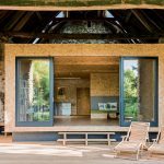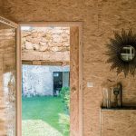 There were certain natural inspirations within this tranquil country location that had an influence on the materials selected for the build. Says Ms Waïss: ‘We wanted to employ wood – like that used for a garden hut – to match up with and complement the existing ancient stone walling. For me, it was important to see the wood both inside and out. The overall concept was to create a simple, modern form for the cabin – like a cube suspended within this old existing farm building. But we wanted to retain the shape and look of the appealing original structure from the exterior.’