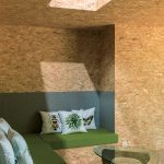 - Felt is used as headboard cladding in the bedrooms and around the built-in sofa. The OSB was sourced from a local mill.