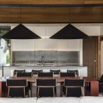 Inspirations here included the use of natural, local materials and the architects say that it was the warmth of these that drove the design process for the house. ‘It’s not just the structure that has the signature of a tropical villa, it’s enhanced by the use of green tones, various timbers and the flow of interior materials to the exterior.