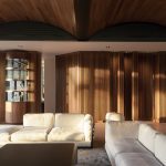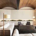 While the architecture claims straight lines and geometric presence, the interior areas throughout the structure were created to contort the space with curves and wooden ceilings, applied materials and interior architecture. Something the architects describe as ‘soft modern’.