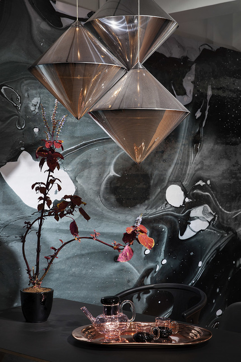 Drawing viewers out of the light and into the shadows, this nuanced altar of black design pieces from lacquered and glossy to honed and perforated, is destined to titillate. This seductive line up will include Dixon’s Melt and Cut pendants as well as ‘Copper Shades’ in a new black finish, with Boom and Bell table lamps, all arranged and displayed in trailblazing curatorial style.