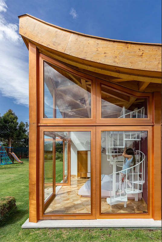 ‘We were also interested in reducing the extensive use of concrete and cement that has been detrimental to the climate, specifically from CO2 emissions. The extensive use of CO2 sequestering timber made that possible. The original intent was to source the wood locally, but the lack of a sustainable forest industry in the region produced alternative searches. This led us to northern Europe where prefabricated timber systems proved to be the answer,’ says Aaron Leppanen of architecture firm Leppanen Anker Arquitectura.