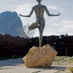 - ‘Sanyata’ statue (yoga woman) by Robin Kutinyu (right).