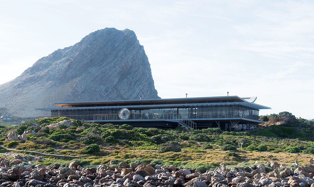 This windswept dune and rock peninsula represents a unique 10 500 square metre location in the Kogelberg Nature Reserve. Rooi-Els, where the house is located on a promontory, is on the opposite side of Table Bay from Cape Point and an existing, essentially modern dwelling was erected here several years ago. The built structure is around 850 square metres.