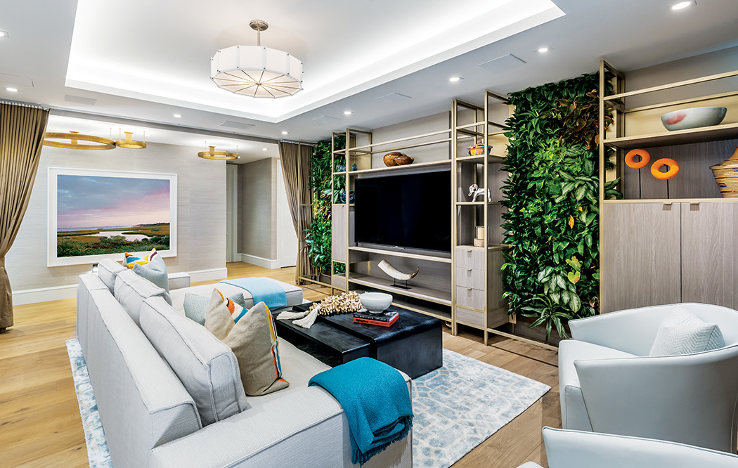 ‘The most notable feature is the architectural undertaking, which is relevant to the roof area landscaping. We will shortly be opening the entire central portion of the unit to the rooftop with a glass atrium and staircase, which has finally been approved by the local authorities. There will be much native Florida planting on the rooftop, including trees; a hint of this is seen currently in the living walls of the family room.