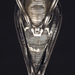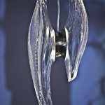 The Duna Pendant for Lasvit was inspired by the dynamism of dune formations, Duna is an asymmetrical pendant composed by pairing intersecting glass forms; their striated surface generating a varied reflection and refraction.