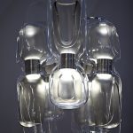 The Eve Pendant Chandelier for Lasvit is composed of fifteen glass pieces arranged in a single ensemble, Eve combines traditional glassmaking techniques with parametric design.
