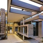 - Angular contemporary signatures characterise this architecture. Natural materials include rock and timber for wall cladding and sun control respectively.