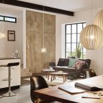 Part of Eurolux’s new concrete range, this trendy pendant has a two-tone brown wood and grey concrete shade. Another option for task lighting is the new Tindori pendant with a naked bulb and maple wood shade.
